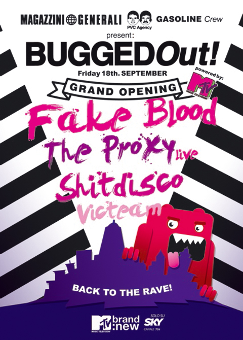 BUGGEDOut reopens its doors tonight! Blasting away high-sounding names of contemporary club culture. It’s the turn in fact of Fake Blood, Shitdisco, TheProxy (free download of a minimix is available here) and as always of the resident Victeam. All this at the Magazzini Generali in Milan!