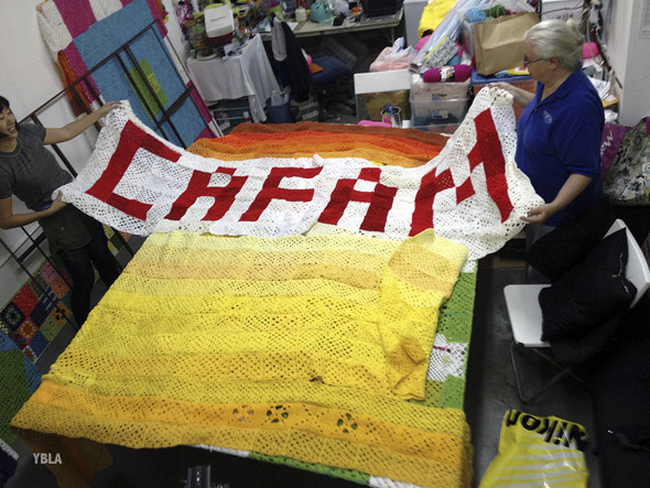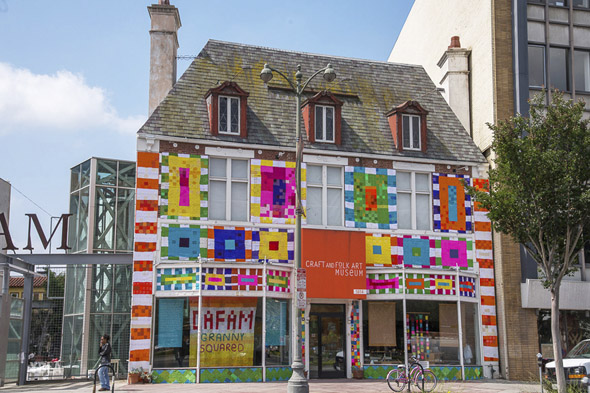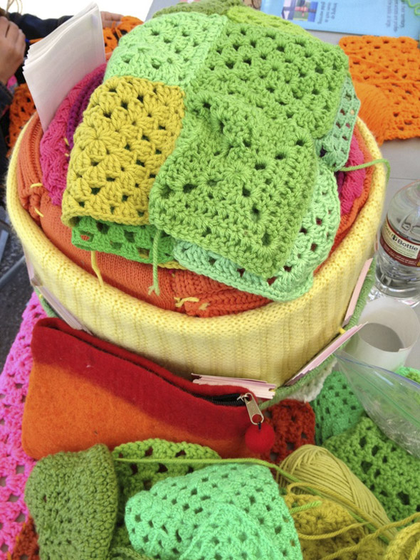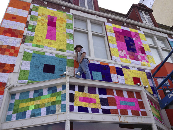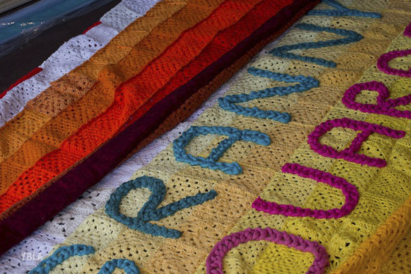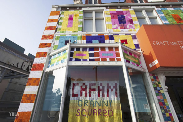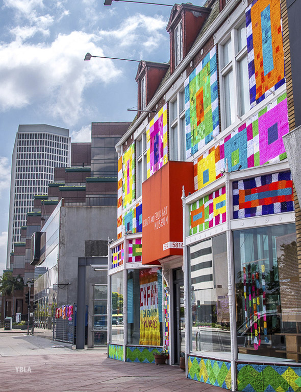 The Craft and Folk Art Museum di Los Angeles è stato recentemente coperto da una colorata installazione cortesia di un gruppo di knitters chiamato Yarn Bombing Los Angeles. Il collettivo di guerrilla art ha coperto la facciata del CAFAM con 12.000 quadrati fatti ad uncinetto da 500 partecipanti di 25 paesi di tutto il mondo. Il risultato di questo intervento urbano ha lo scopo di confutare le idee preconcette che riguardano l’arte.