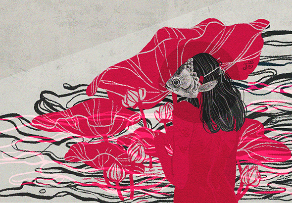 Una sensibilità che ritroviamo anche nell’header che Camelia ha realizzato per noi, suggestivo ed esotico anche nel titolo: “Lo stagno del loto“.