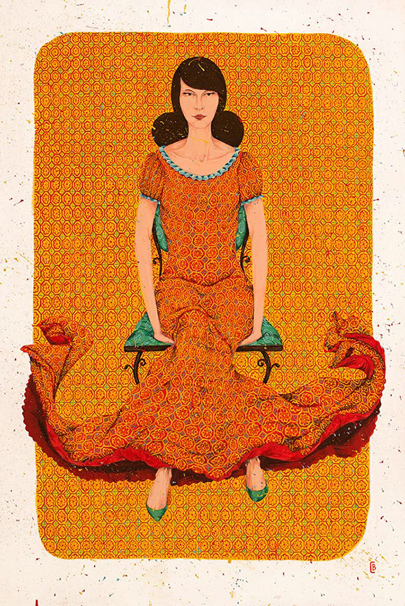 I lavori di Carmine spesso sono barocchi, narrativi, quasi teatrali. In essi l’occhio si perde, alla ricerca di un centro o di un punto di riferimento. Ed è qui che comincia il viaggio dello sguardo e della mente, che l’autore ci invita a fare e a perderci con lui nelle pieghe della fantasia. Vengono alla mente le miniature medievali che coprono l’intera pagina manoscritta; opere uniche, sulle quali ci si potrebbero passare delle ore a scoprire tutti i personaggi e il loro significato.