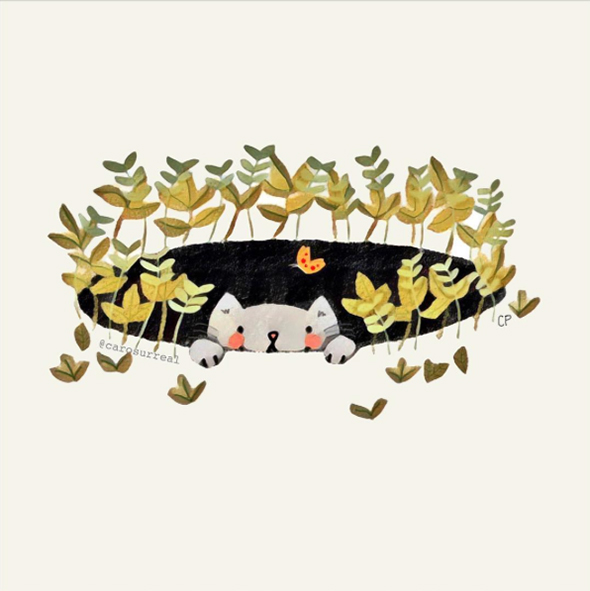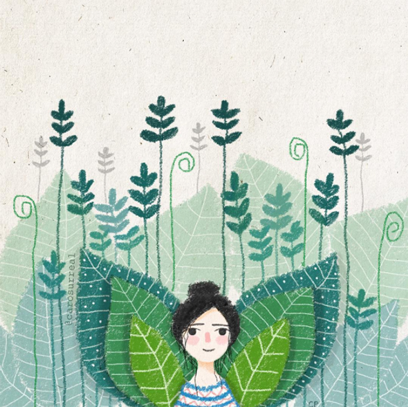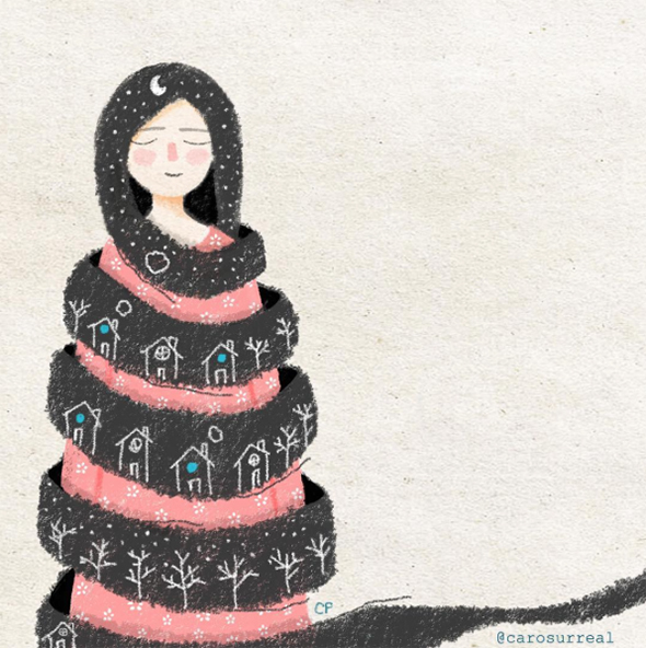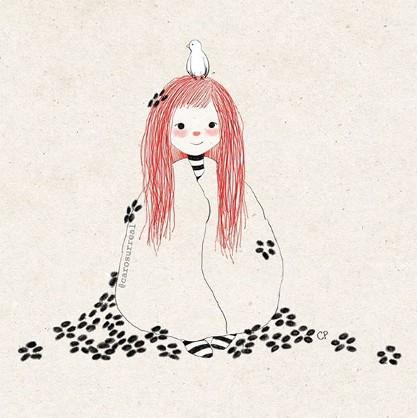 Carolina Parada non è un’artista di professione, ma una biologa di origine colombiana che vive e lavora a Parigi nell’ambito scientifico. Questa versatilità non sorprende più di tanto, perchè la ricerca è un mestiere altamente creativo, che pone le più diverse sfide da risolvere. Ma è il dono di saper giocare con la semplicità che ci fa soffermare sulle sue illustrazioni. Ispirata dal misticismo della natura, Carolina ha la capacità di creare oggetti e personaggi con pochissimi tratti, di solito abbozzati a penna o pennarello, e di renderli vivi con il minimo indispensabile: un tocco di colore rosso, qualche foglia autunnale, semplici fiocchi di neve. Magia.