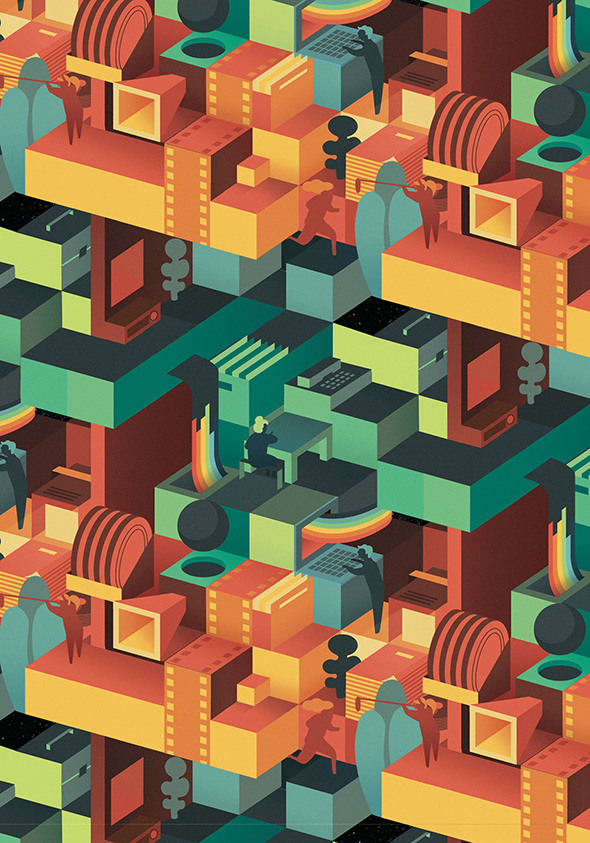 L’amore per la grafica vettoriale è l’ingrediente di base, a cui si aggiungono la passione per l’immaginario sci-fi, un po’ di sana geometria e colori brillanti, quanto basta. È la ricetta di Casmic Lab, duo creativo formato da Amadeo Castroviejo e Roser Miquel, di base a Valencia.