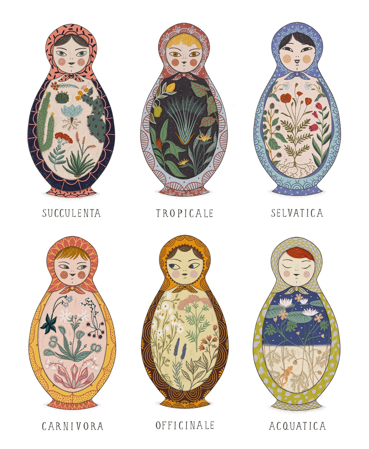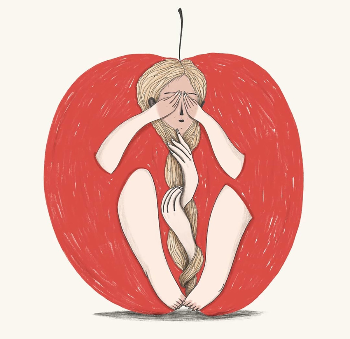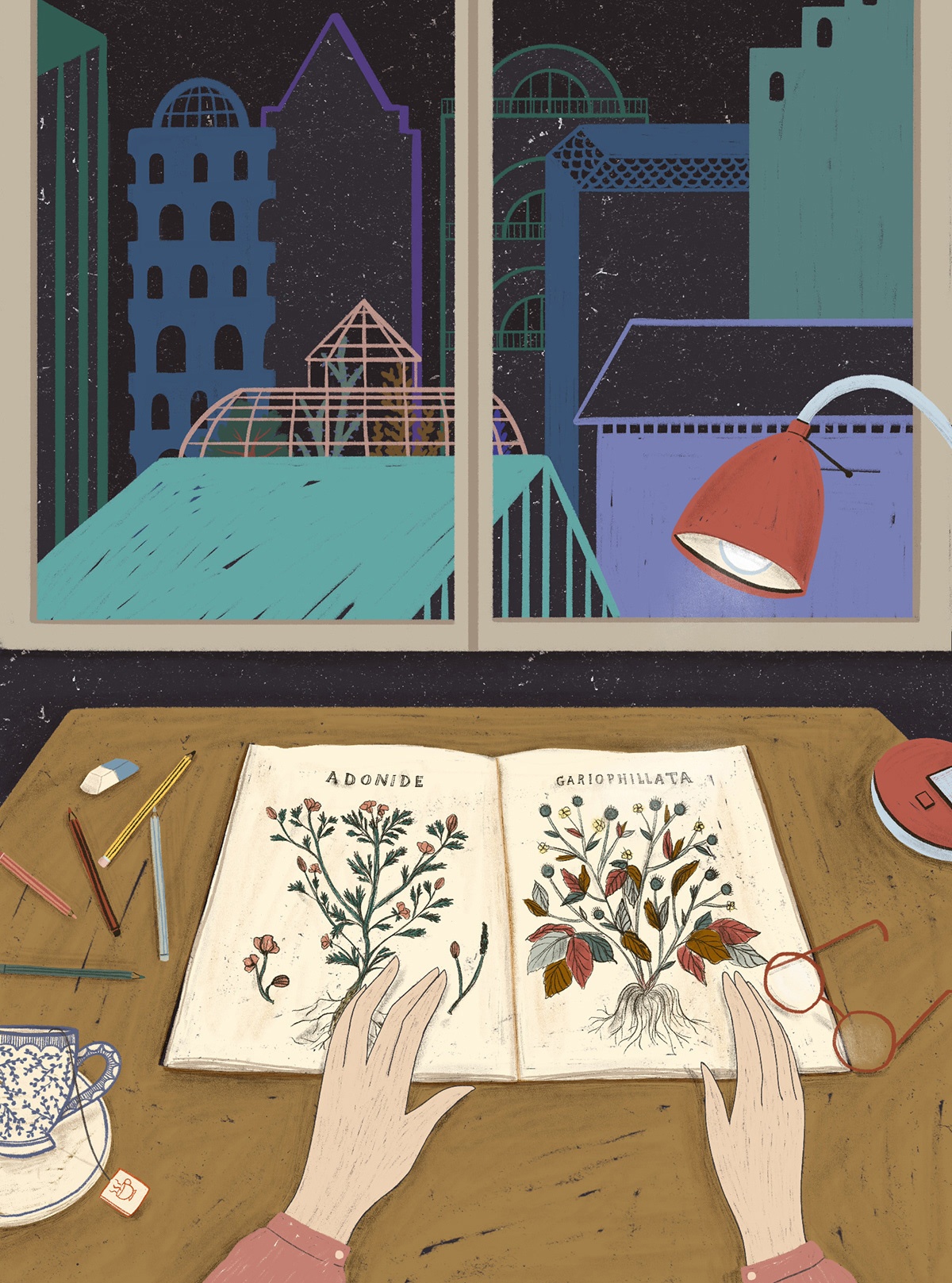 Ne ho diverse. In primis la natura. Sono attratta dall’illustrazione botanica, soprattutto quella delle vecchie enciclopedie e manuali e potrei passare ore in un orto botanico a scattare foto e disegnare. È difficile che riesca ad illustrare qualcosa senza inserirci almeno un rametto o un fiorellino! Creo un dialogo costante tra uomo e natura per indagare su uno stato d’animo o trasmettere un messaggio. Protagonista indiscussa dei miei lavori, insieme alla natura, è la donna. Altre fonti di ispirazione sono le foto della nonna, le memorie di infanzia, il cinema e la letteratura.
