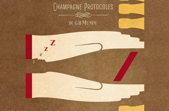 Noma Bar è uno dei più geniali designer del decennio. E fin qui non ho detto nulla di nuovo. Altre volte abbiamo ammirato il suo lavoro da queste pagine, in occasione dell’uscita del libro Negative Spaces o della campagna IBM. Stavolta l’occasione ce la dà lo champagne G.H.Mumm che spiega l’arte e la maniera di accostarsi alle bollicine attraverso 100 protocolli, manco a dirlo, magnificamente illustrati dal Nostro. Ammiriamo ed impariamo.