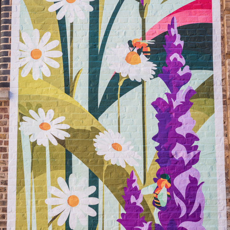 Se passate da Londra fate un salto a Mercer Walk. In questa piccola oasi di pace e tranquillità fuori dal centro, nel cuore di Covent Garden, spicca Wildflowers: un murales per la cui realizzazione Davis si è lasciato ispirare dal colori dei fiori di campo e dal lavoro meticoloso delle api. Potete trovare un approfondimento sul progetto su questa pagina.