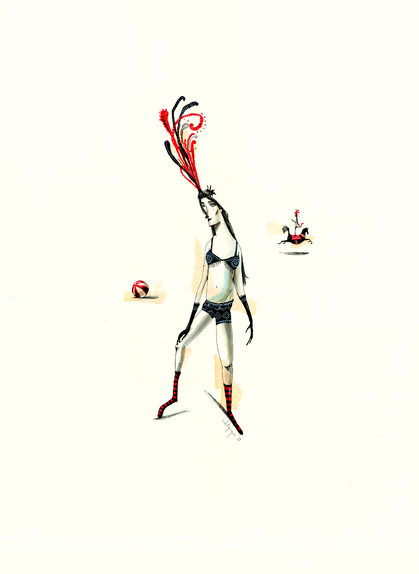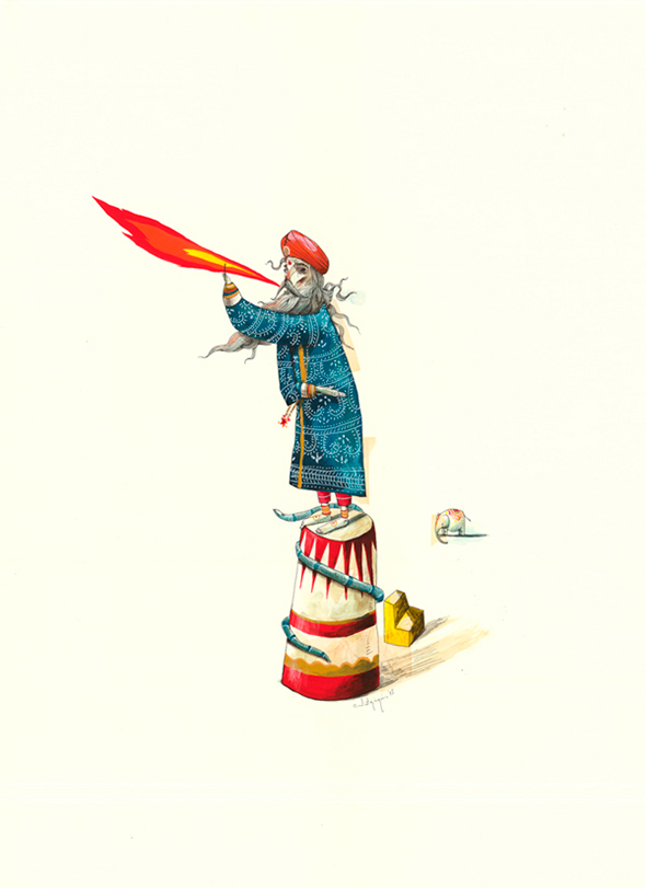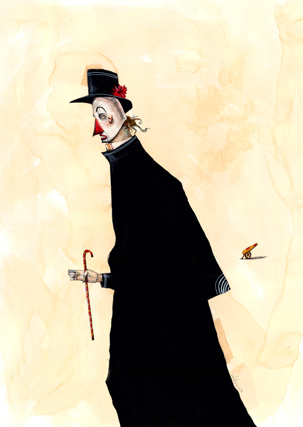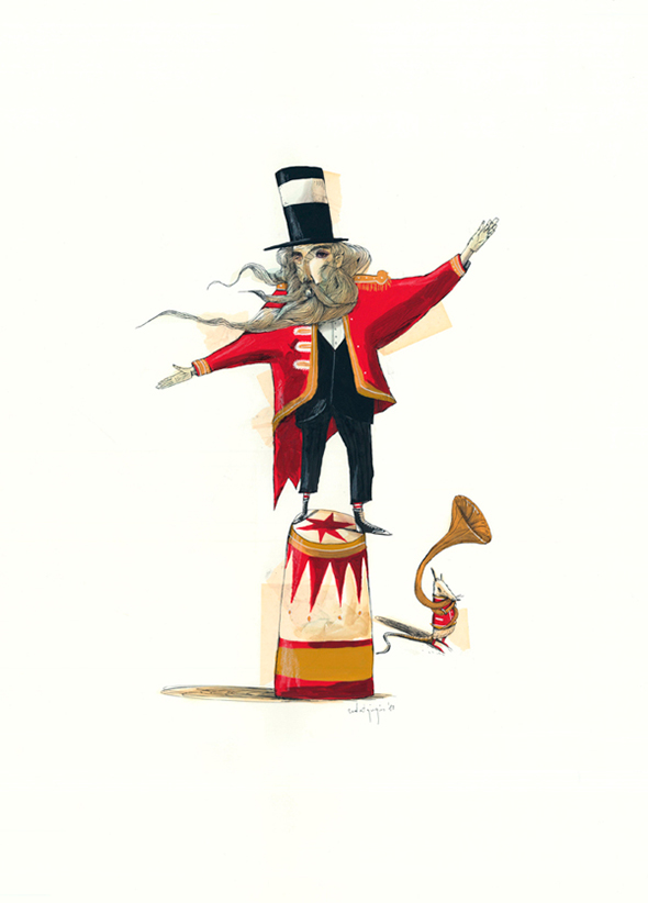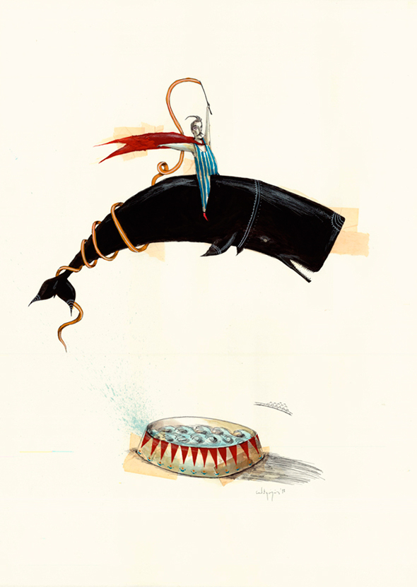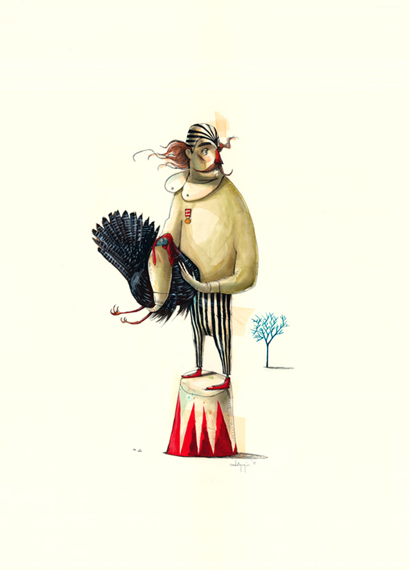 Dopo la scuola di belle arti il percorso di Sedat Girgin devia verso un corso di studi in product design, ma l’illustrazione rimane il cardine della sua espressione estetica e non può non diventare la sua attività principale.  Dalle illustrazioni per l’infanzia e per l’editoria ai progetti personali, lo stile unico dell’artista turco si caratterizza per il suo essere così ingenuamente grottesco da provocare un’immediata reazione empatica nell’osservatore, che scruta incuriosito l’aspetto goffo e malinconico dei personaggi ritratti. Con la serie Circus ha ottenuto la sua prima personale alla Milk Gallery di Istanbul nel 2013. Così piatti eppure così espressivi, i suoi personaggi sono figure vuote da cui traspare un che di inquietante; volti afflitti che associati all’idea del circo rivelano il paradosso di un mondo affascinante e ambiguo. Proprio come le sue opere.