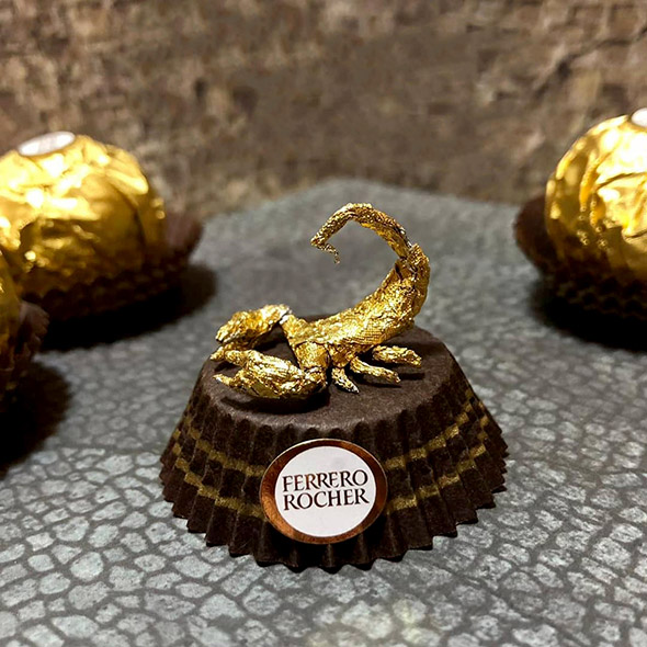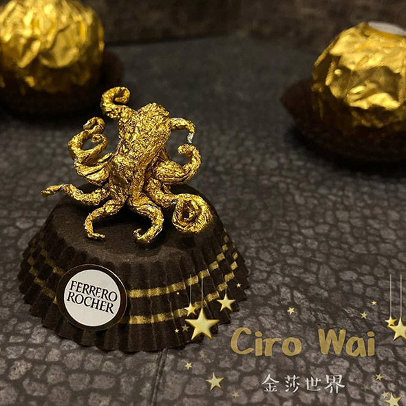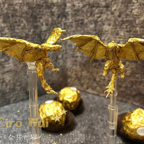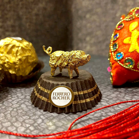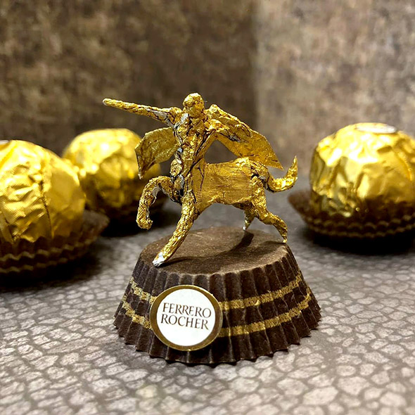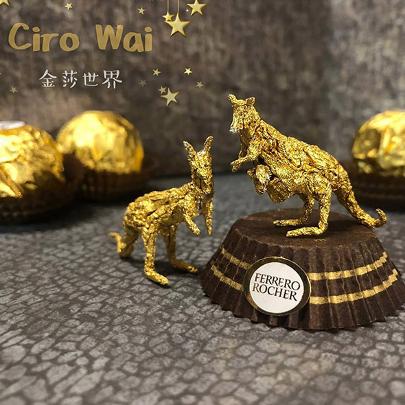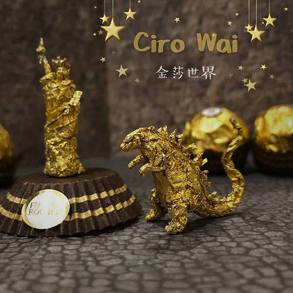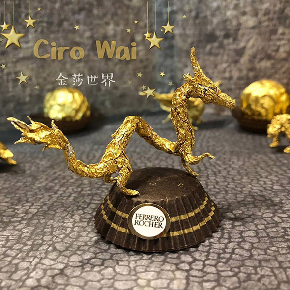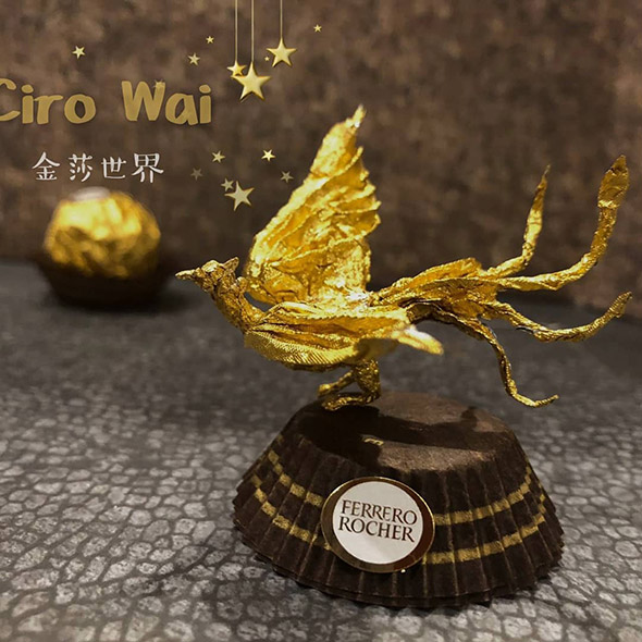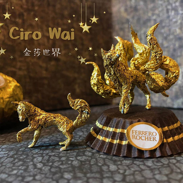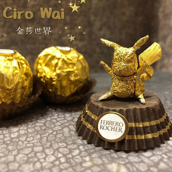 L’artista cinese usa la carta dei Ferrero Rocher per realizzare sculture estremamente piccole ma dal grado di dettaglio davvero impressionante. Wai racconta di aver iniziato quasi per gioco provando a riprodurre la figura di Pikachu, per poi passare a characters più complessi come i 12 segni zodiacali, draghi e altre figure dell’arte tradizionale cinese, svariate icone del cinema e dello showbiz.