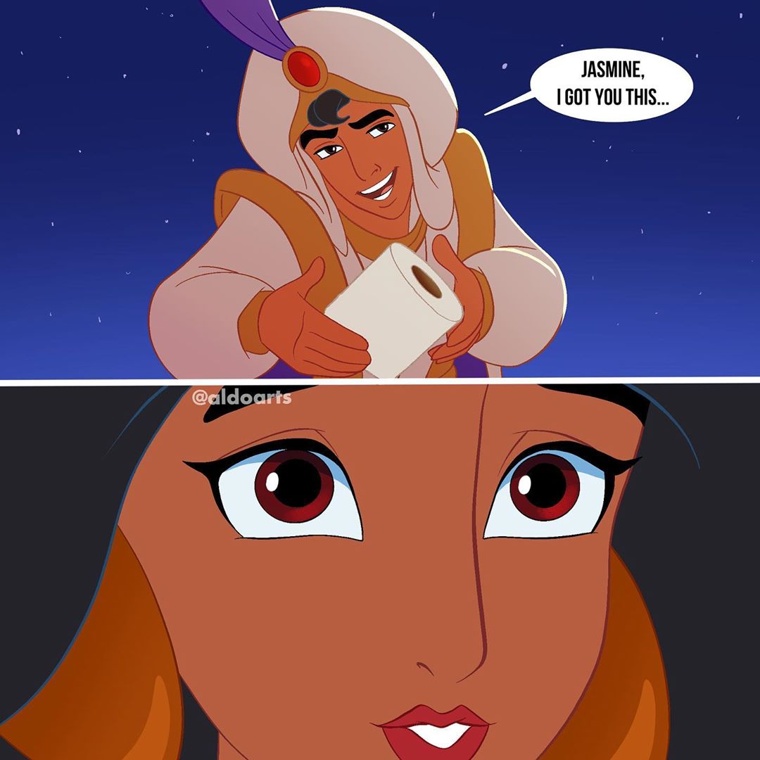 Cosa accadrebbe ai nostri beniamini se anche nel loro mondo fatato e perfetto arrivasse la minaccia del Coronavirus? Aldoarts, disegnatore specializzato in meme a tema Disney, ha provato a immaginare quali conseguenze il lockdown causerebbe nelle vite e nelle avventure dei protagonisti delle fiabe più amate di tutti i tempi.