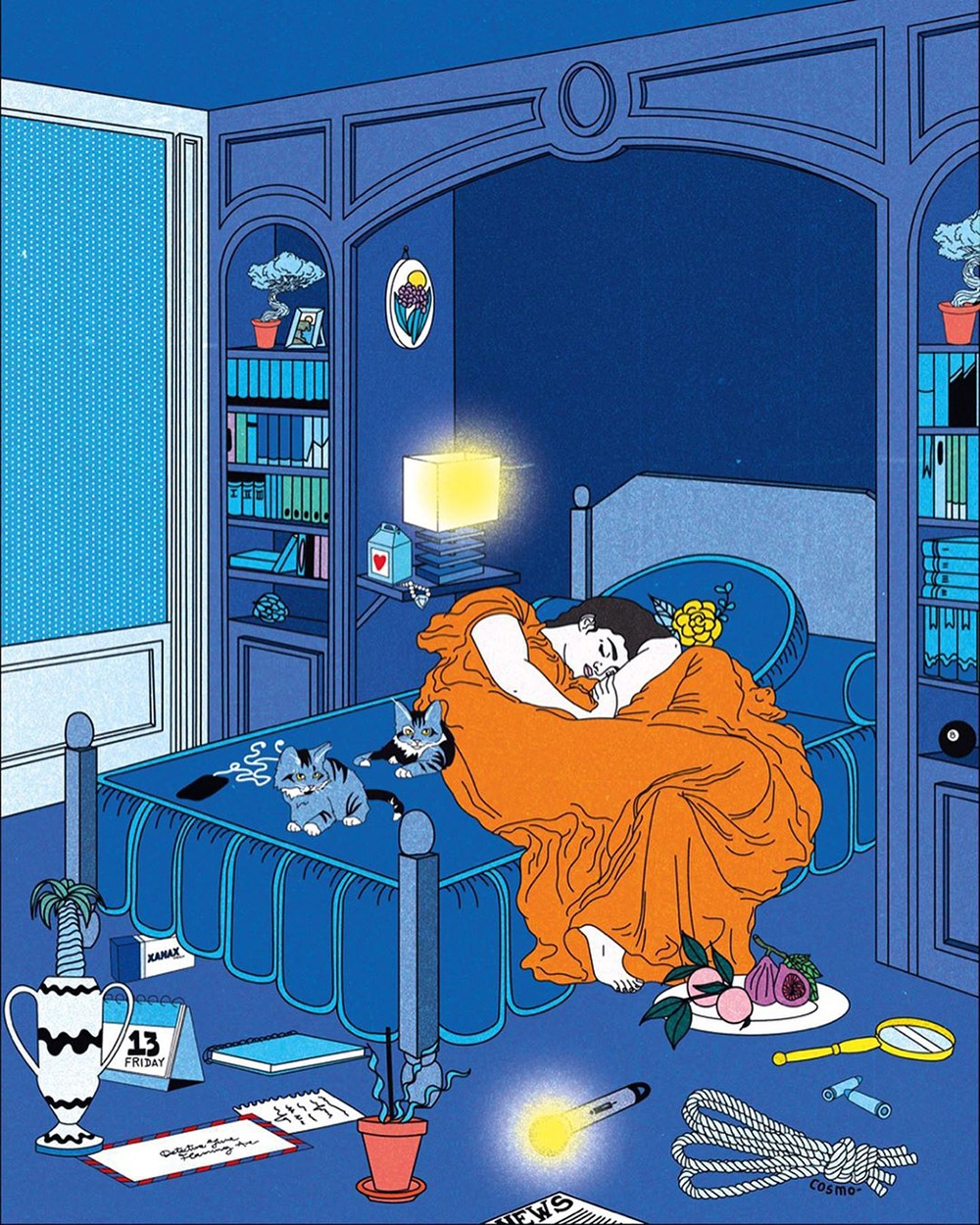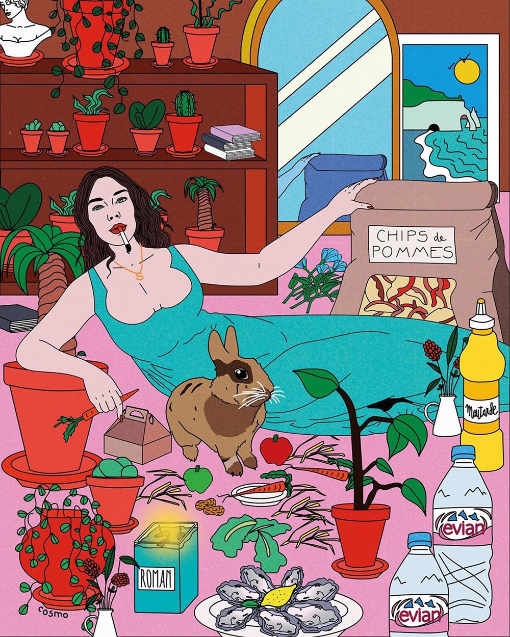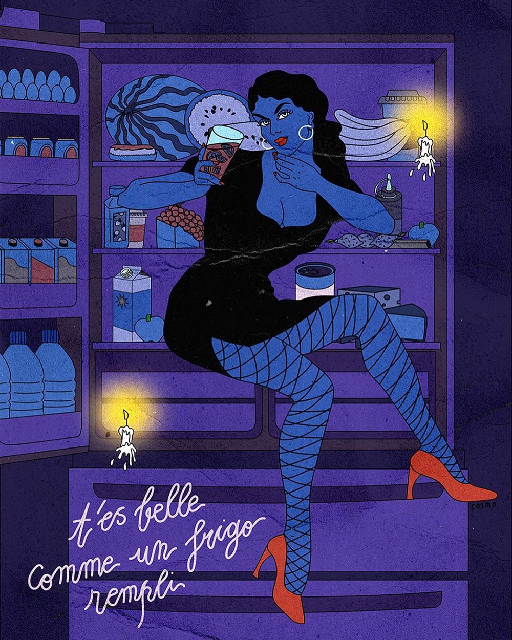 L’universo di Cosmo, illustratrice francese, parla contemporaneamente la lingua del fumetto e del Neoclassicisimo, dell’Art Nouveau e dell’arte preraffaellita. Con un tocco di erotismo e voyeurismo che rende tutto più stuzzicante.