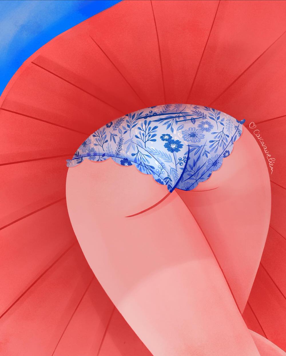 Instagram è il luogo scelto da Coucou Aurelien per raccogliere i suoi progetti personali, che realizza quando non è impegnato con il suo lavoro principale, quello di art director presso un’agenzia di Parigi. Le illustrazioni sono spesso dei close up che vengono riproposti da più punti di vista e in varie combinazioni di colore e luminosità. Sensualità e ironia sono le due tematiche da cui non si discosta mai e che rendono piacevole e accogliente il viaggio nel suo mondo dove il vedo non vedo la fa da padrona.