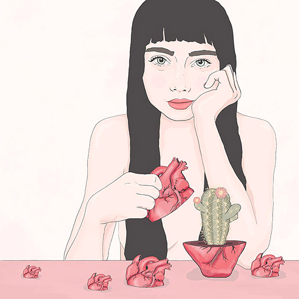 Le pene d’amore sono il tema centrale del lavoro di Cris Valencia, illustratrice catalana che affronta gli aspetti emotivi e psicologicicon una certa dose di sadismo e un pizzico di compiacimento masochistico.