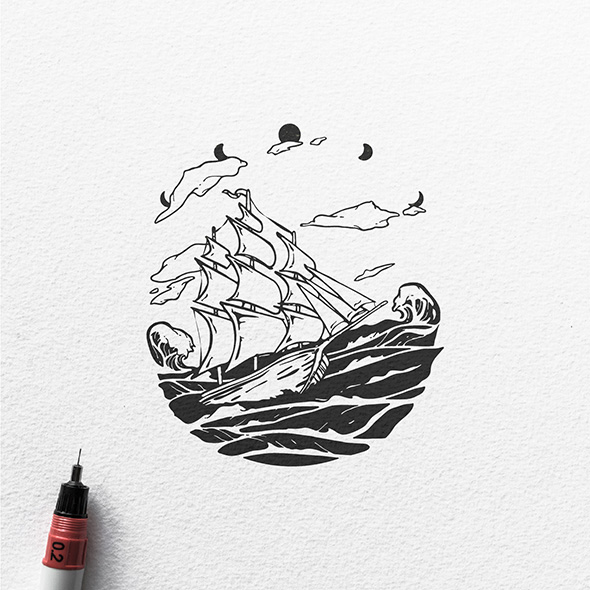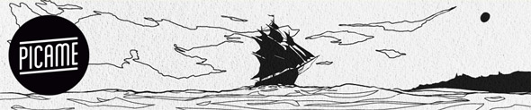 Dario ci tiene a far sapere che il suo immaginario è fatto di “simboli e idee semplici che possono essere compresi da tutti“. Un approccio creativo che ritroviamo anche nell’header che ha voluto dedicare a tutti i lettori di PICAME. Non fa venire voglia anche a voi di mollare tutto e salpare su un vascello alla conquista dei sette mari?