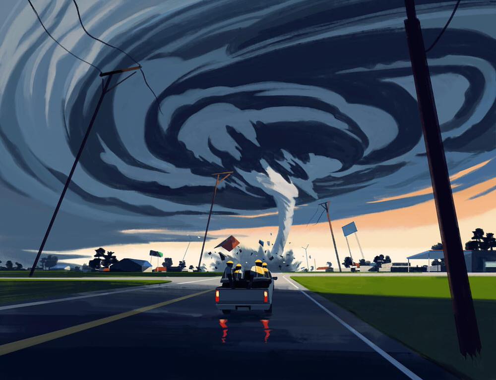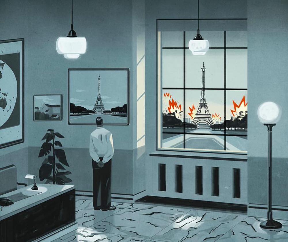 Spesso ho necessità di fare cose diverse e provo a farle rientrare in un progetto che abbia un fine lavorativo. Nel caso di American West volevo dedicarmi alla scoperta di luoghi importanti per storia, bellezza e cultura di alcuni stati dell’America dell’ovest. Volevo semplicemente disegnarli senza aggiungere nessun concetto o secondo livello di lettura visiva. Sono riuscito a farne una serie per il New Yorker prima e poi un libro per Corraini. Lo avrei probabilmente fatto anche da solo ma in qualche modo sarebbe stato diverso.
