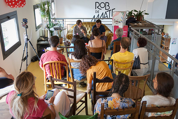 Una delle scene più divertenti è stata quella della Debora Senz’H che gira per Rob de Matt col suo carico di cocktail di Gomma (delle bottiglie in vetro con all’interno il drink ideato da Kenny, barman di Rob de Matt e illustrato proprio da Senz’H) urlandone a gran voce le caratteristiche ai passanti, mentre i momenti più emozionanti sono da sempre legati agli abbracci e ai ringraziamenti che riceviamo a fine Festival: vedere e sentire la felicità di chi partecipa (dagli espositori ai partner dell’evento, passando per il pubblico) ci fa venire sempre voglia di ricaricare le batterie e ricominciare ad organizzare un nuovo Gomma.