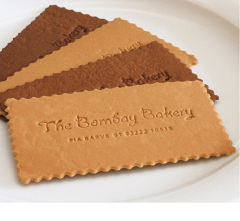 Business cards from Bombay Bakery are not only beautiful, but must also be good… Other edible examples here.