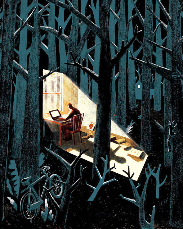 Le illustrazioni concettuali di Eleni Debo sono in gran parte realizzate su commissione per il mercato editoriale internazionale e colpiscono per lo stile che unisce un tratto pittorico con echi di cubismo e futurismo