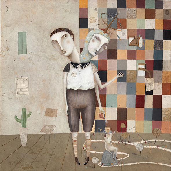 Colori rarefatti, tratto pittorico, personaggi dalla faccia lunare, che ci osservano stupiti o fissano il vuoto oltre le nostre spalle. Tutto ci sembra familiare, ma ci viene un sospetto: stiamo spiando il sogno di qualcun altro oppure siamo noi ad essere dentro al suo?