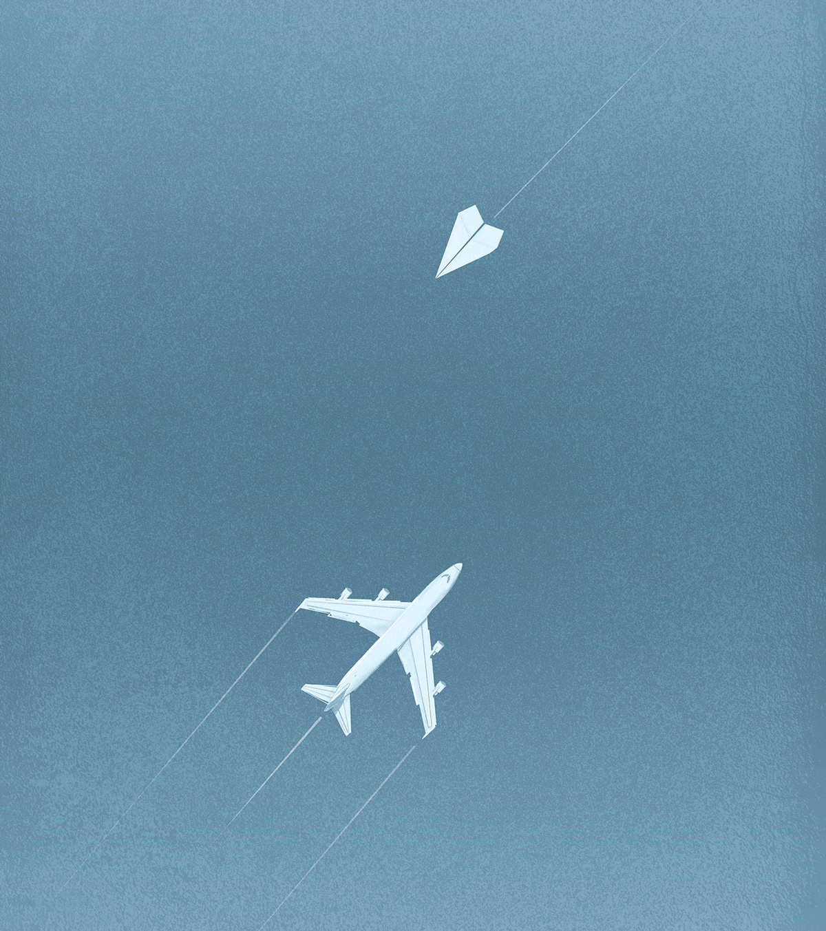 Gli accostamenti imprevedibili e tutto il repertorio di “trucchi” illusionistici dell’illustrazione concettuale viene usato per stigmatizzare il nostro modo di vivere: natura e tecnologia, spirituale e materiale, logica e irrazionalità, sono solo alcuni dei temi indagati da Elia. Attenzione però, mai prendersi troppo sul serio. I suoi non sono giudizi o sentenze da trattato filosofico ma semmai suggestioni, talvolta ironiche, per indurci a fare quelle semplici ma fondamentali domande su “la vita, l’universo e tutto quanto” (come recita il titolo parodistico del romanzo omonimo di Douglas Adams). Ecco cosa mi ha raccontato.