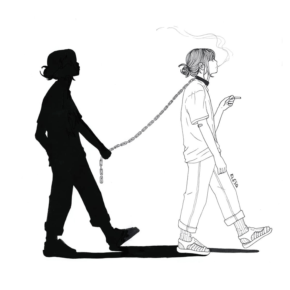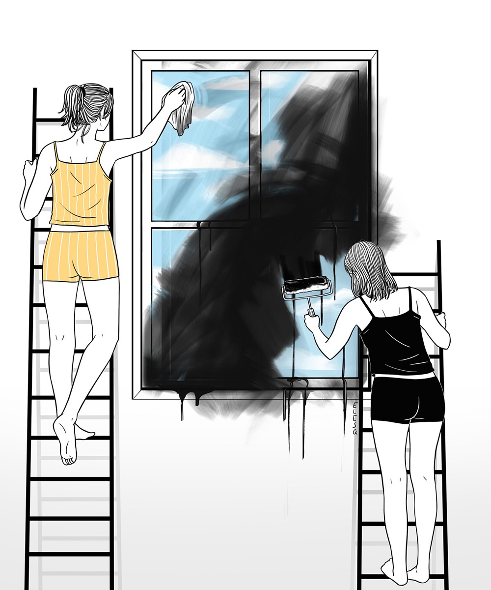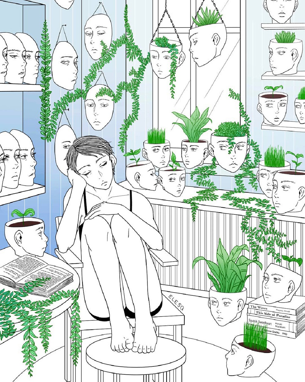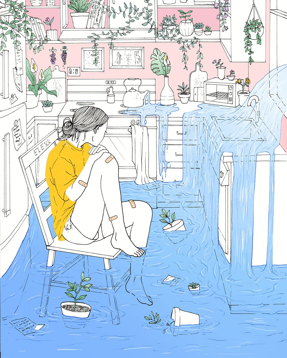 I temi dell’acqua, dell’aria e della natura ritornano frequentemente nelle illustrazioni di Elliana, o come elementi antagonisti o come ancore di salvezza e speranza a cui aggrapparsi. Seguitela su Instagram.