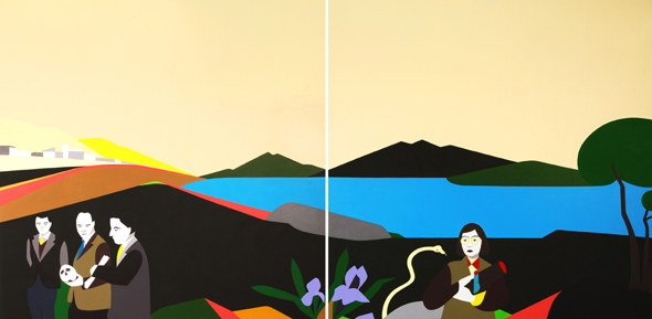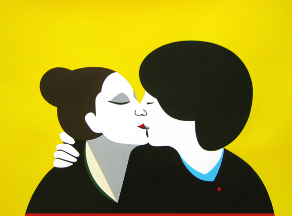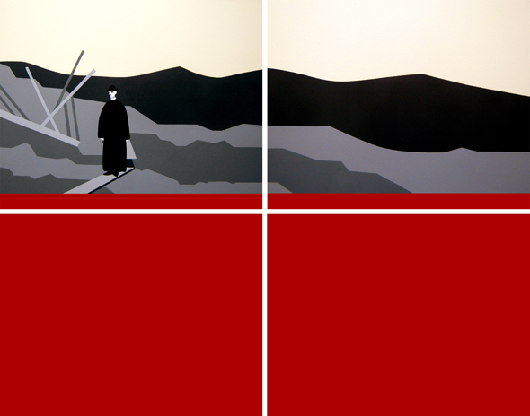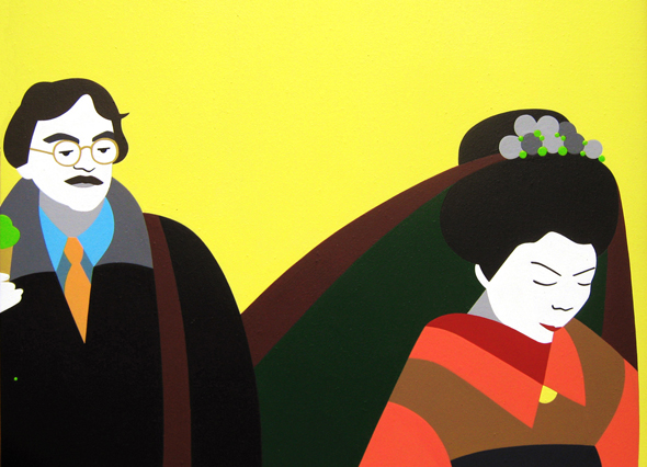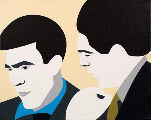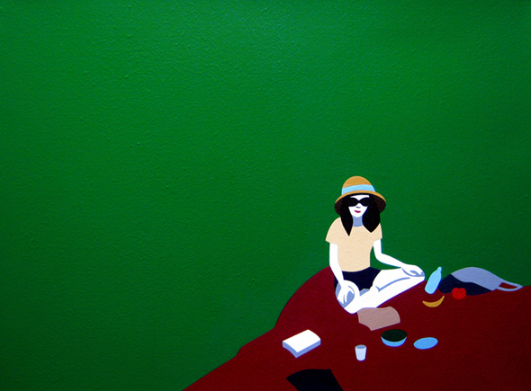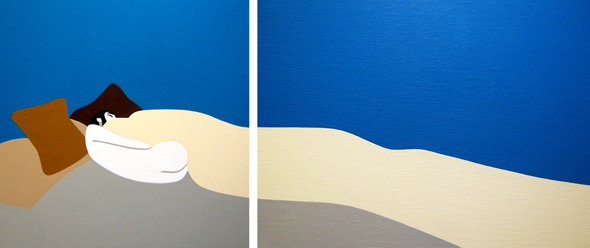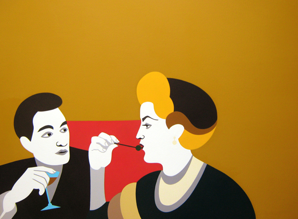 É stato difficile scegliere le immagini per questo post, le avrei prese tutte, più avanzavo tra i lavori di Ester Grossi. Scene dal taglio cinematografico, in cui si scorgono i capolavori dell’epoca d’oro, che prendono nuova vita. Uno stile essenziale e moderno, le immagini fatte di pixel e tinte piatte, ma dipinte su tela: una sintesi perfetta e una dimostrazione chiara di quanto può essere viva la pittura contemporanea.