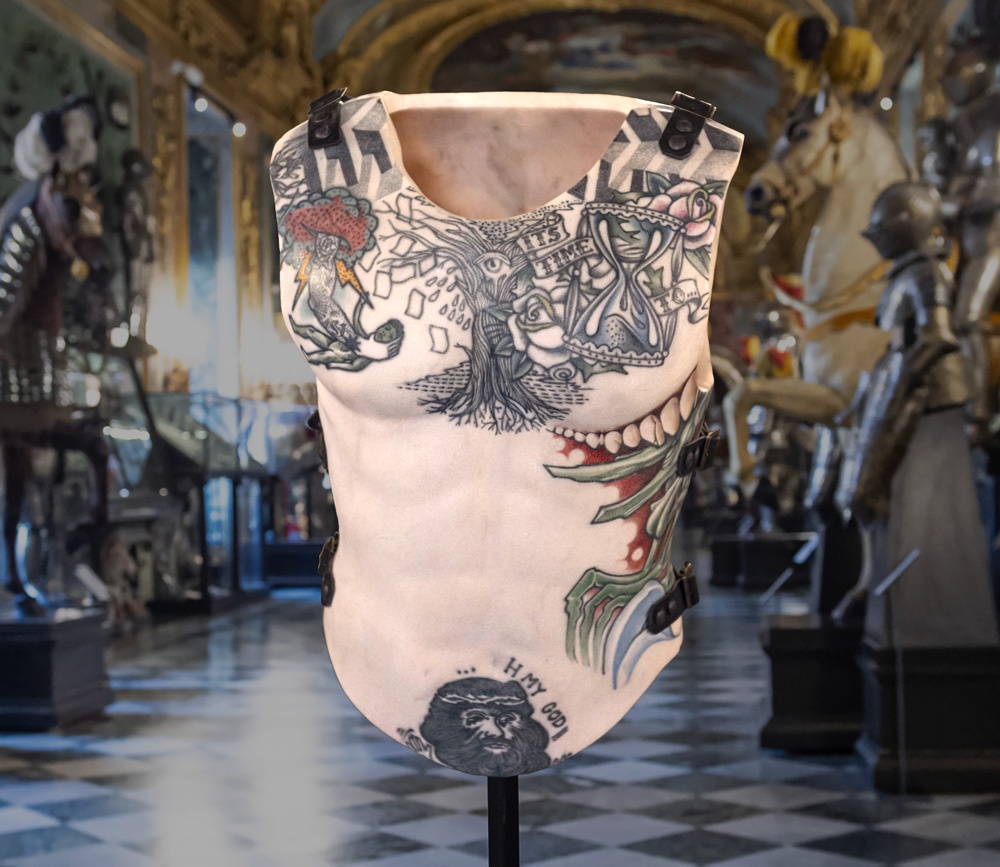 Lorica è l’altra opera inedita significativamente esposta nella sala dell’Armeria Reale. Si tratta di una corazza realizzata in marmo rosa dello spessore di un centimetro ed è stata concepita scansionando con la fotogrammetria il torso nudo del cantante Fedez, a cui è stata in seguito aggiunta la riproduzione fedele dei suoi tatuaggi. L’opera è una provocazione che contrappone la figura eroica del guerriero romano con quella della celebrity dei nostri tempi.