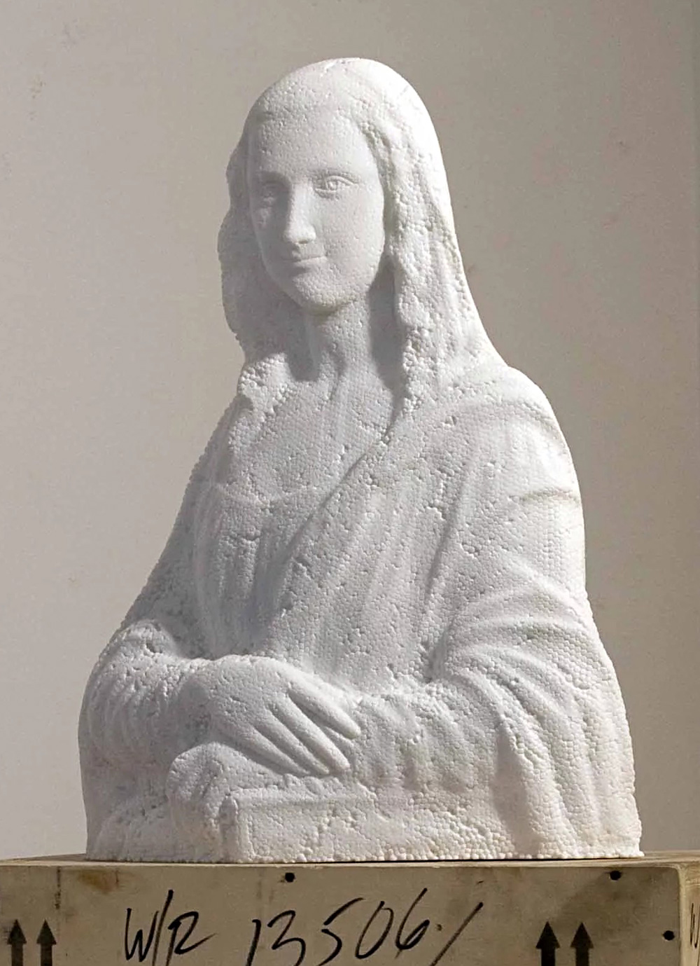 Souvenir Gioconda mostra il doppio virtuosismo tecnico di Fabio, che rende tridimensionale una delle icone artistiche universalmente più popolari e le dona l’effetto materico del polistirolo