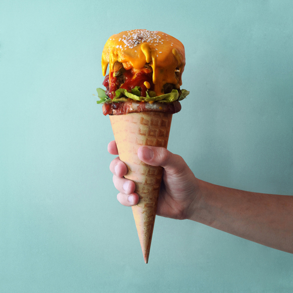 The contemporary art inspired by food? This is the case of Quentin and Thomas, two french artists that creatively render burgers on art works. “We were so bored of random food at lunch, so we started cooking together. It soon became a kind of a ritual: improvising and experimenting new ways of cooking a burger“. Mixed with sport, politics, cynicism and surrealism these burgers, inspired by mainstream characters, are more fascinating than tasty!
