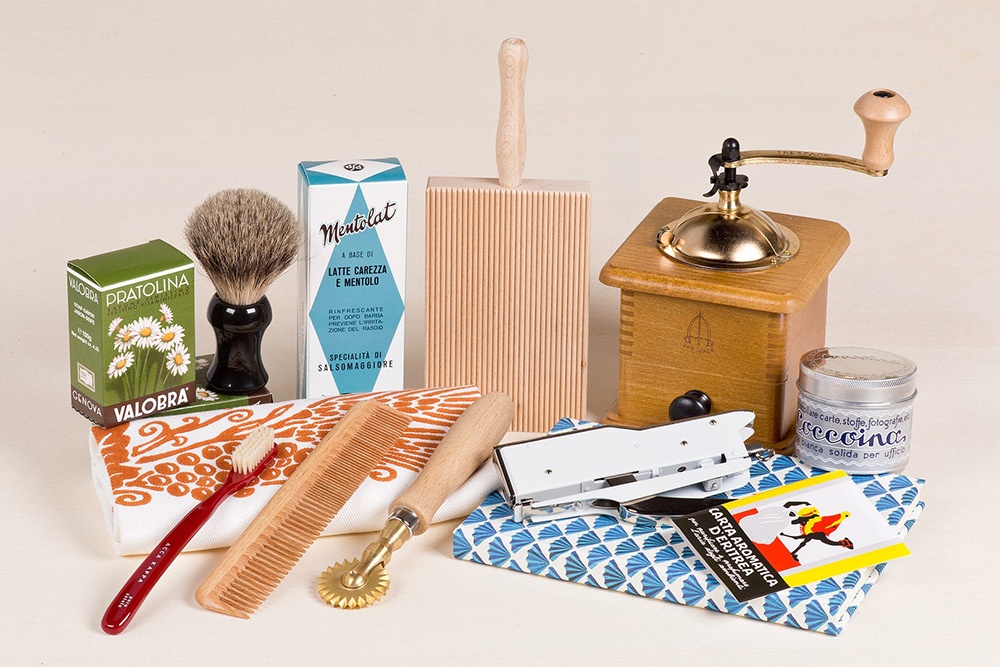 La cucitrice Zenith, le spazzole Acca Kappa, l’Amarena Fabbri, le carte Modiano, la Coccoina. Sono solo alcuni tra le decine di prodotti scelti da Anna e Alex attraverso un processo di selezione che si attiene a criteri rigorosi. In primis deve trattarsi di oggetti piccoli e poco costosi (non troverete la Vespa, per intenderci, o la lampada Arco di Castiglioni). Inoltre non devono aver subito, nel tempo, restyling finalizzati a modificarne la forma, la funzione o anche solo il packaging. Insomma, devono essere il più possibile marketing-free. Un oggetto rispondente a tali caratteristiche entra a far parte dell’archivio, che ospita anche uno shop digitale e nel 2019 è stato, per circa due mesi, un negozio pop-up fisico all’interno del MoMA di New York. Esperienza e che, se non fosse stato per la pandemia, si sarebbe ripetuta anche nel 2020.