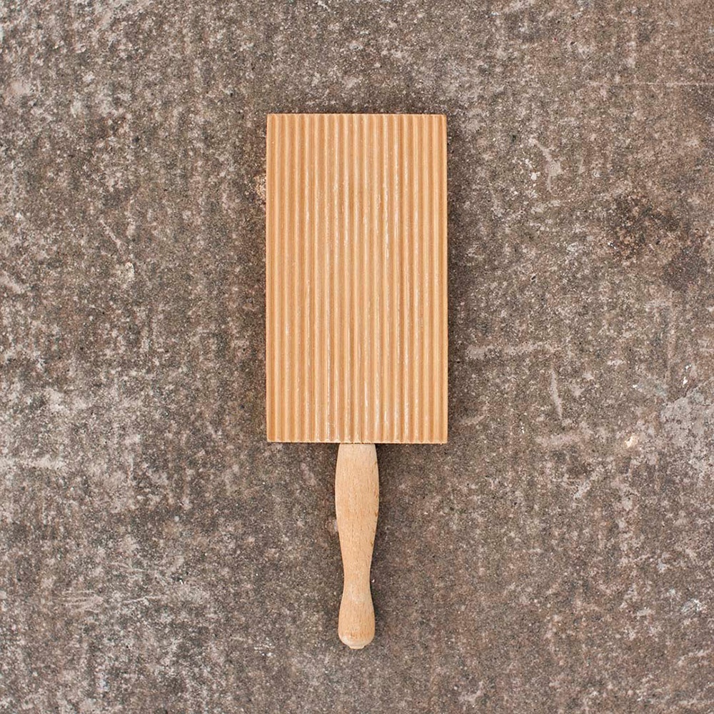 Strumento per la rigatura dello gnocco, piccolo tagliere in faggio con scalanature per la rigatura dello gnocco, attrezzo tradizionale, data sconosciuta