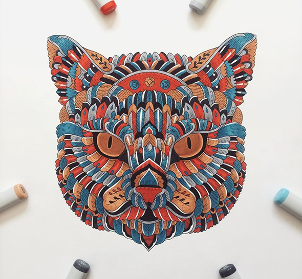 “Il mio lavoro è per la maggior parte una reinterpretazione degli elementi naturali (e soprattutto delle specie animali) in chiave moderna: le mie illustrazioni, realizzate nella quasi totalità dei casi con media tradizionali, sono molto decorative e complesse, ma composte da decine di unità e forme semplici. Questo dualismo tra complessità e minimalismo è alla base di tutto il mio lavoro creativo, ed è la rappresentazione su carta della mia identità personale”.