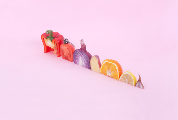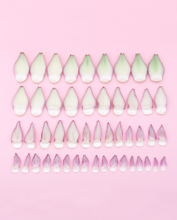 Vivisezione di vegetali” è il capo di accusa per il quale è imputata l’artista francese Florent Tanet. I suoi still-life applicano il rigore geometrico ad elementi naturali come frutta, verdura e legumi. Ed una volta conclusasi la sessione fotografica, via di minestrone.