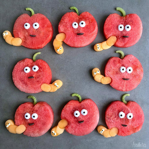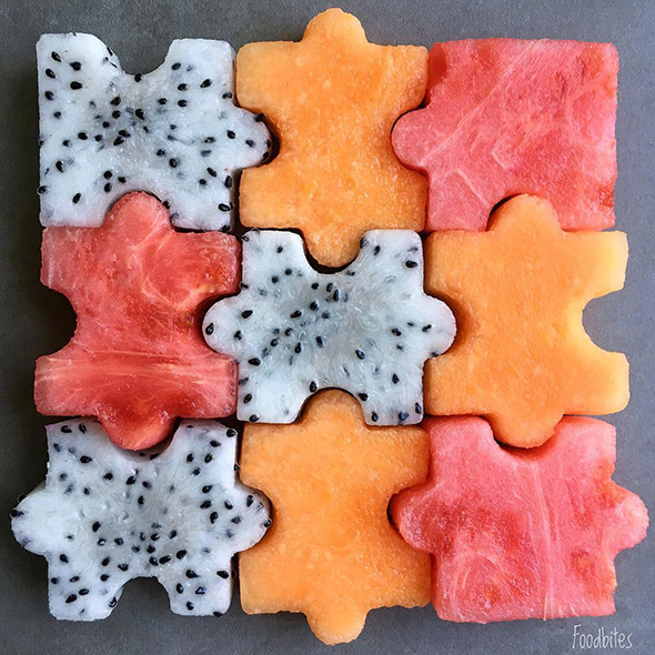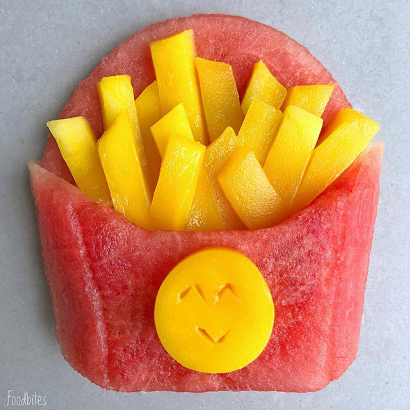 Il suo profilo instagram @foodbites raccoglie tante fantasiose creazioni, forse nate dall’esigenza di rendere più appetibili alimenti come frutta e verdura che non sempre i piccoli amano mangiare. Tra buffi personaggi e mostricciattoli non mancano le composizioni astratte e quelle geometriche, in cui i vari frutti si alternano e si incastrano tra loro. Per un pieno di vitamine che fa bene al corpo e alla mente.