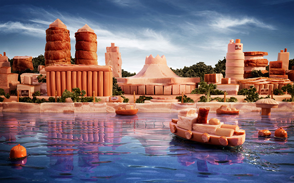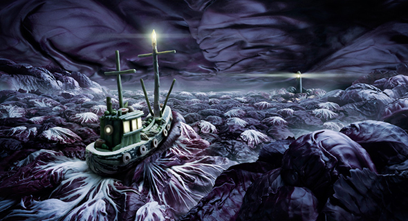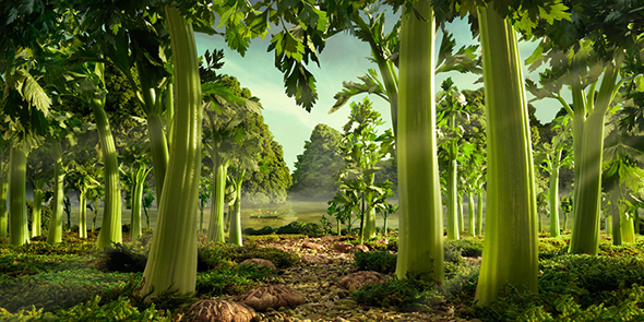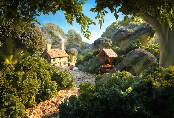 Food + landscapes = the perfect combo! The technique of Carl Warner is tasty and interesting: the photographer captures amazing views, mixing different ingredients only to be manipulated digitally. A pinch of fantasy and we can engross ourself in a new world. How many of us wouldn’t walk in a pink park where the trees are huge and delicious lollipops, swim in a chicory sea or maybe venture in a celery wood?