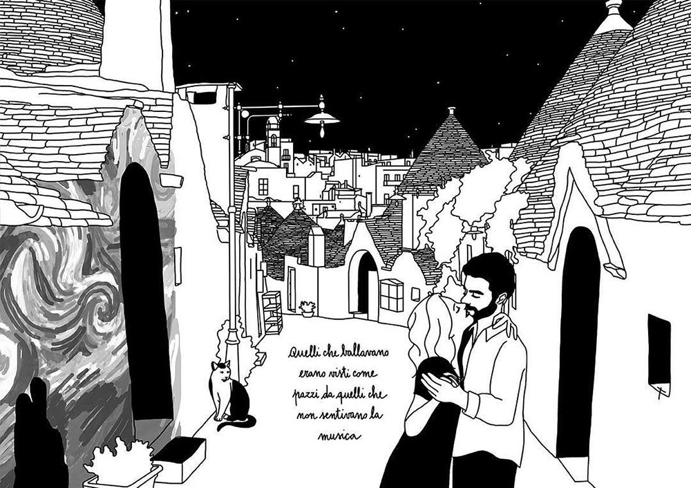 A volte bastano un pennarello nero, dal tratto pulito e sinuoso, della carta bianca e tante storie da raccontare, alcune su commissione altre invece più private e autobiografiche ma nelle quali è facilissimo riconoscersi.