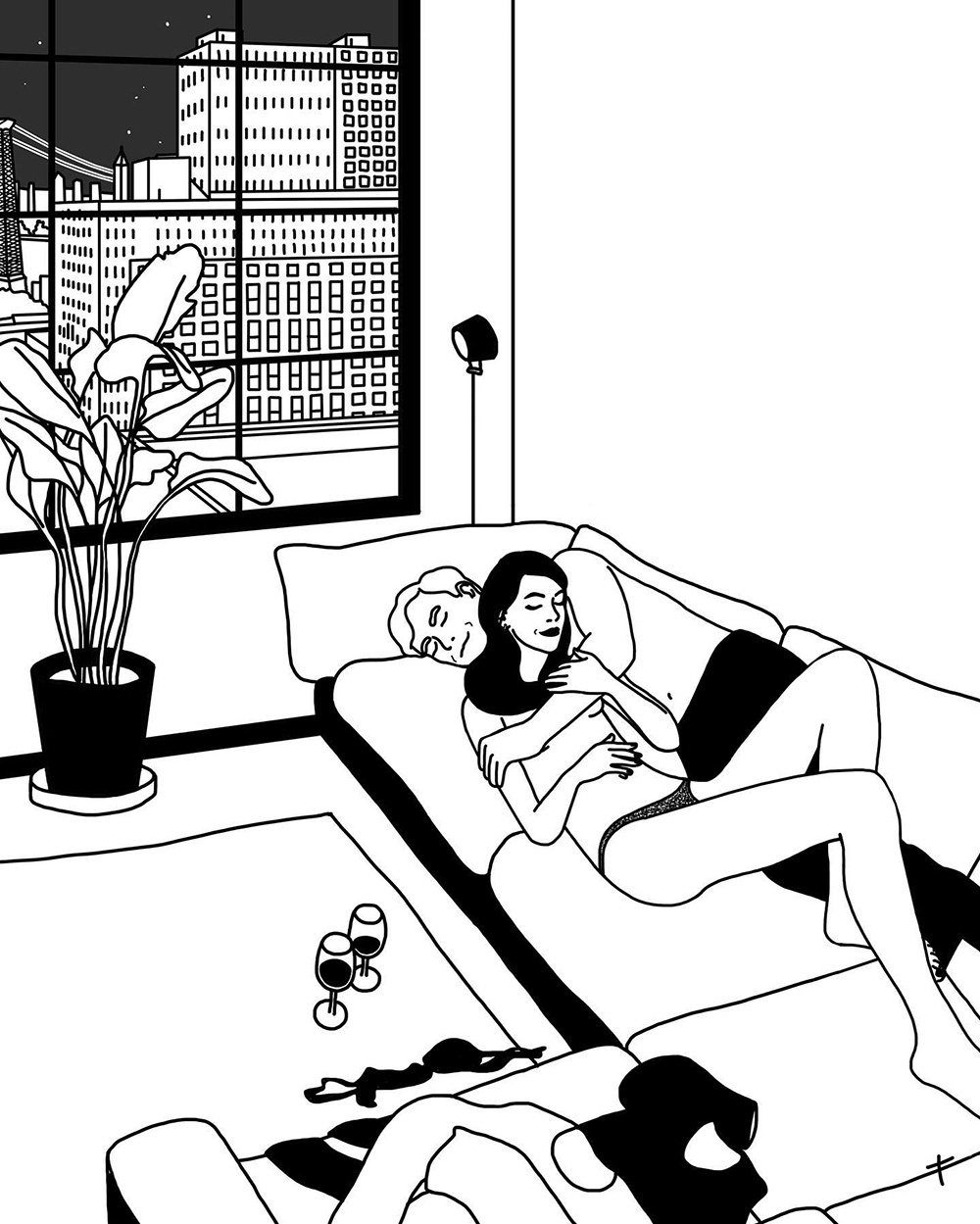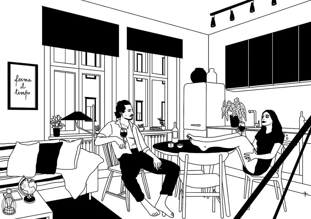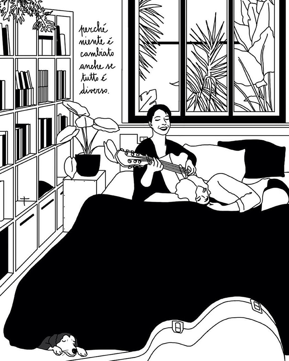 Francesca Fusari, conosciuta su Instagram come selapennamidisegna, si è laureata in Architettura al Politecnico di Milano e per passione illustra i sentimenti e le emozioni quotidiane, senza tralasciare lo spazio dove prendono vita i suoi racconti, con i decori degli interni e i dettagli di ogni scena, che non sono meno importanti dei protagonisti raffigurati. Tutto si lega perfettamente nella sua personale architettura dei gesti e delle persone, nulla è lasciato al caso ma è parte integrante della stessa corale narrazione.