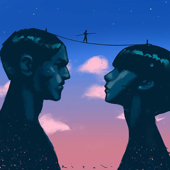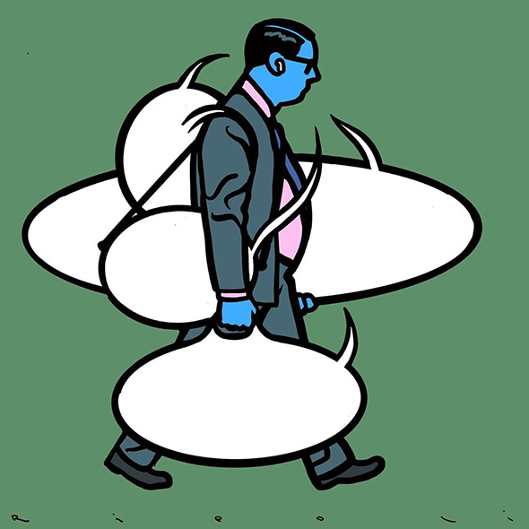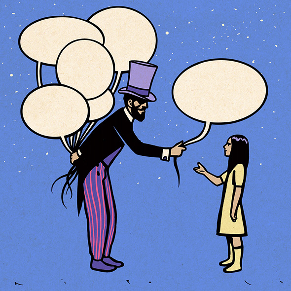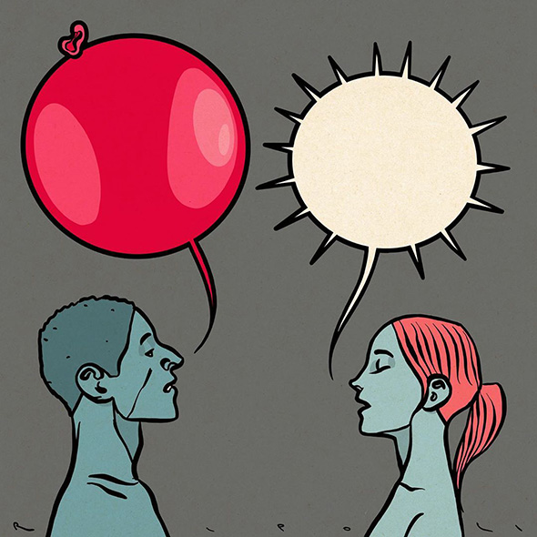 Tra i temi ricorrenti nelle tue illustrazioni ci sono la comunicazione verbale e le relazioni umane tra persone. Come mai questa scelta?