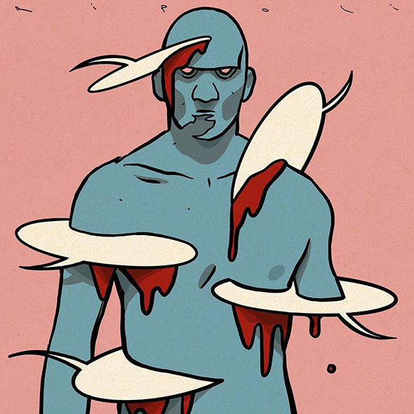 Per citare Bukowsky potrei dire che “la gente è il più grande spettacolo del mondo“. Mi interessa l’osservazione del comportamento umano, sia del singolo che delle masse. L’antropologia, la sociologia, la psicologia, le emozioni sono state spesso alla base della mia ricerca artistica, precedente e contemporanea alla carriera nel mondo del fumetto. Nelle illustrazioni che pubblico online traduco visioni che precedentemente avrei sviluppato in scultura, in pittura o con una qualsiasi delle modalità dell’arte.