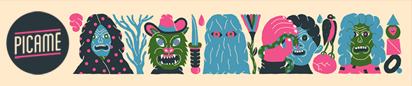 A differenza di quanto il suo nome lasci intendere, c’è poco di geometrico nella produzione artistica di Mattia Botta in arte, appunto, Geometric Bang. Attivo su numerosi fronti tra cui l’illustrazione e la street art, le sue creazioni sono contraddistinte dall’utilizzo di palette cromatiche molto accese, che vanno a comporre figure umane ed antropomorfe e texture caleidoscopiche. Manna per gli occhi e per la mente, insomma. Suo è anche l’header che vedete qui sotto, realizzato apposta per PICAME.