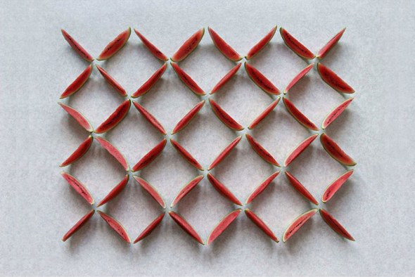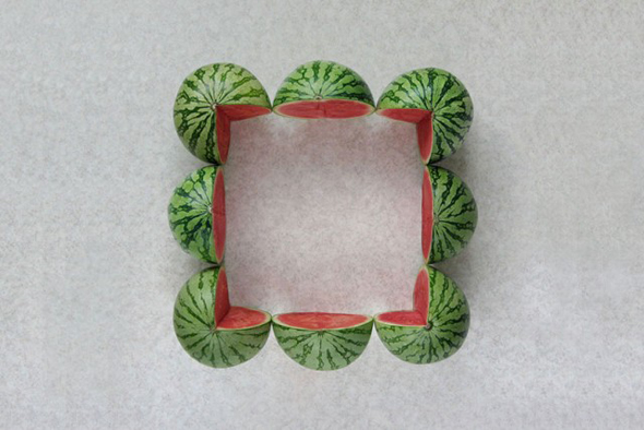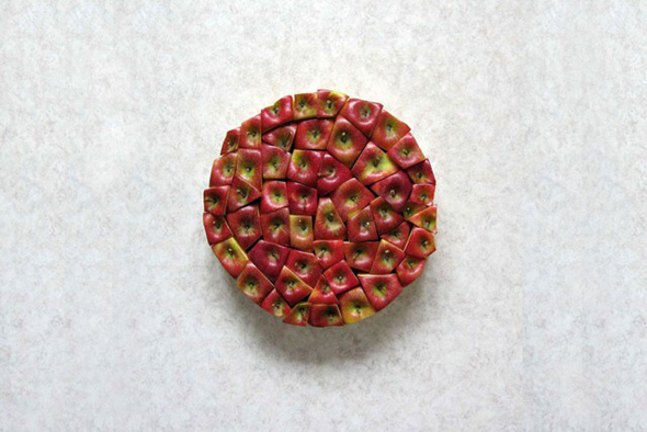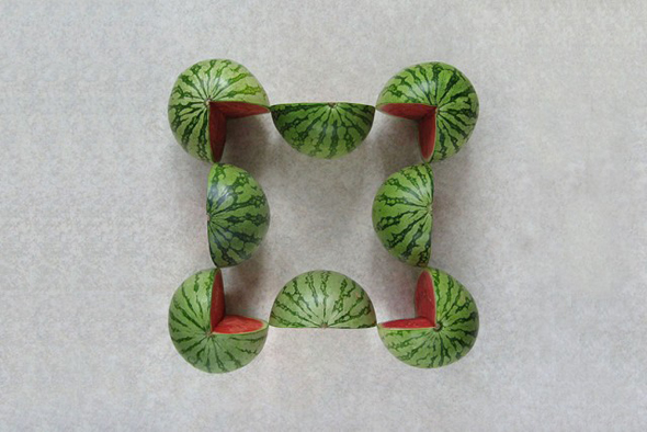 Sakir Gökcebag è un apprezzato e prolifico artista turco. Tra le molte opere raccolte sul suo portfolio (che vi consiglio di esplorare con attenzione) vi sono una serie di still life realizzati tagliando e disponendo frutta e verdura a comporre motivi e forme geometriche. Un’idea semplice ma non scontata, specchio della personalità di questo artista dall’innata capacità di vedere “oltre” gli oggetti ed il loro utilizzo.