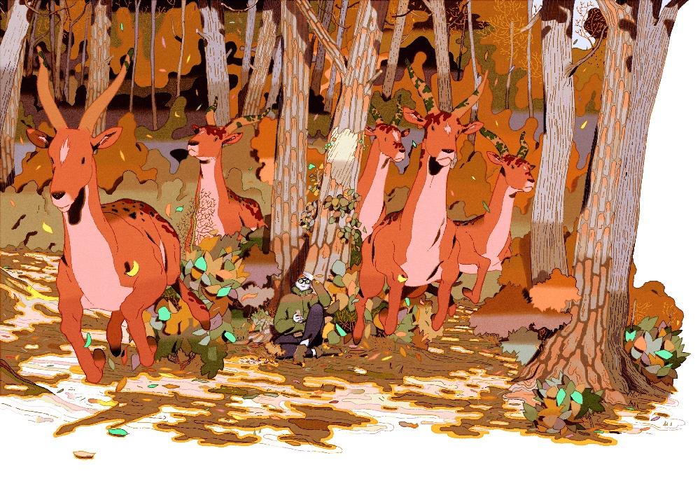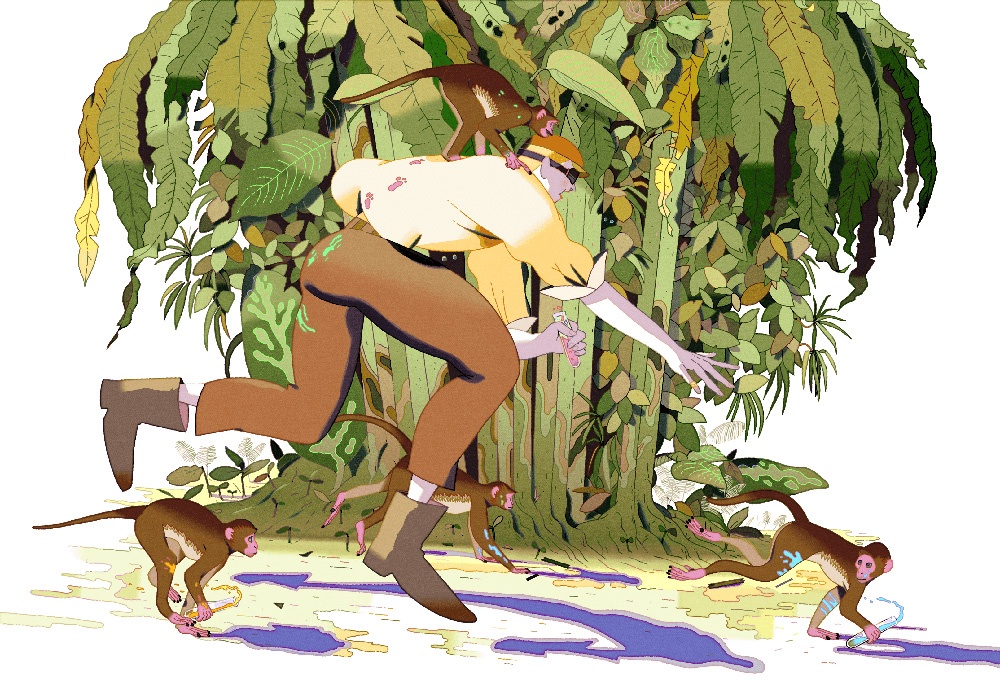 Stabilire nuove proporzioni fra gli elementi conosciuti e introiettati crea una nuova lettura del mondo che lo rende sì familiare ma al contempo estraniante. Questo si fonde poi con la percezione del Colorseeker basata sulle situazioni che sta vivendo in ogni scena: le rondini di Marzo sono tanto più grandi quanto l’aiuto che offrono nella raccolta del colore; le scimmie di Giugno sono tanto più piccole quanto il fastidio e l’opposizione che recano.