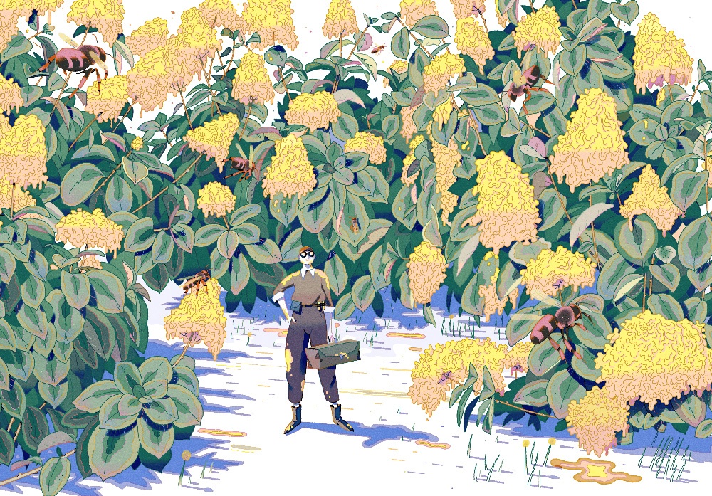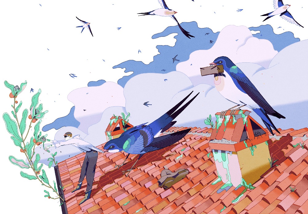 Ogni tavola è collegata all’altra ma alcune di esse lo sono maggiormente, in un modo più stratificato e narrativo. Questo legame ci permette di conoscere meglio il personaggio e i luoghi dove avvengono le scoperte e la raccolta del colore. Ci racconta ad esempio come il fiore di Aprile sia stato raccolto sui tetti di Marzo o come una fiala di colore persa venga ritrovata a Settembre. Ma non voglio svelare oltre…