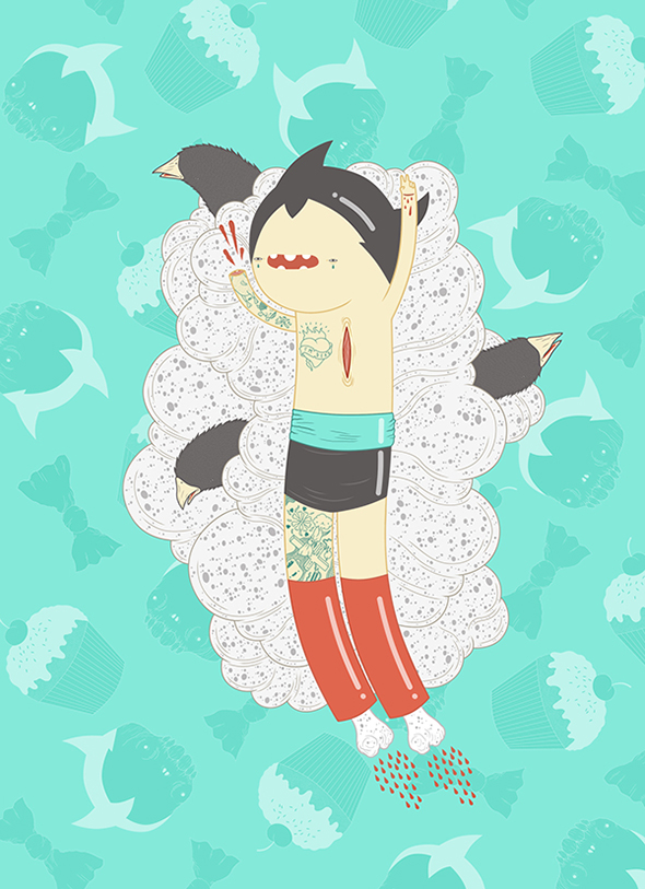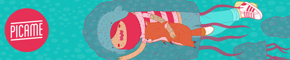 Le illustrazioni di Gianluca Marjani Marras sono ad un primo sguardo allegre e divertenti. È osservando con più attenzione che si scorge una natura più inquietante fatta di una moltitudine di occhi sottili e disseminati su fronti, braccia, mani o pance. I protagonisti sono characters spesso privi di mani e piedi, animali come volpi ed elefanti sono i loro compagni di viaggio, e tra di essi c’è anche una diabolica medusa, quella che campeggia sull’header che Gianluca ha realizzato apposta per PICAME.