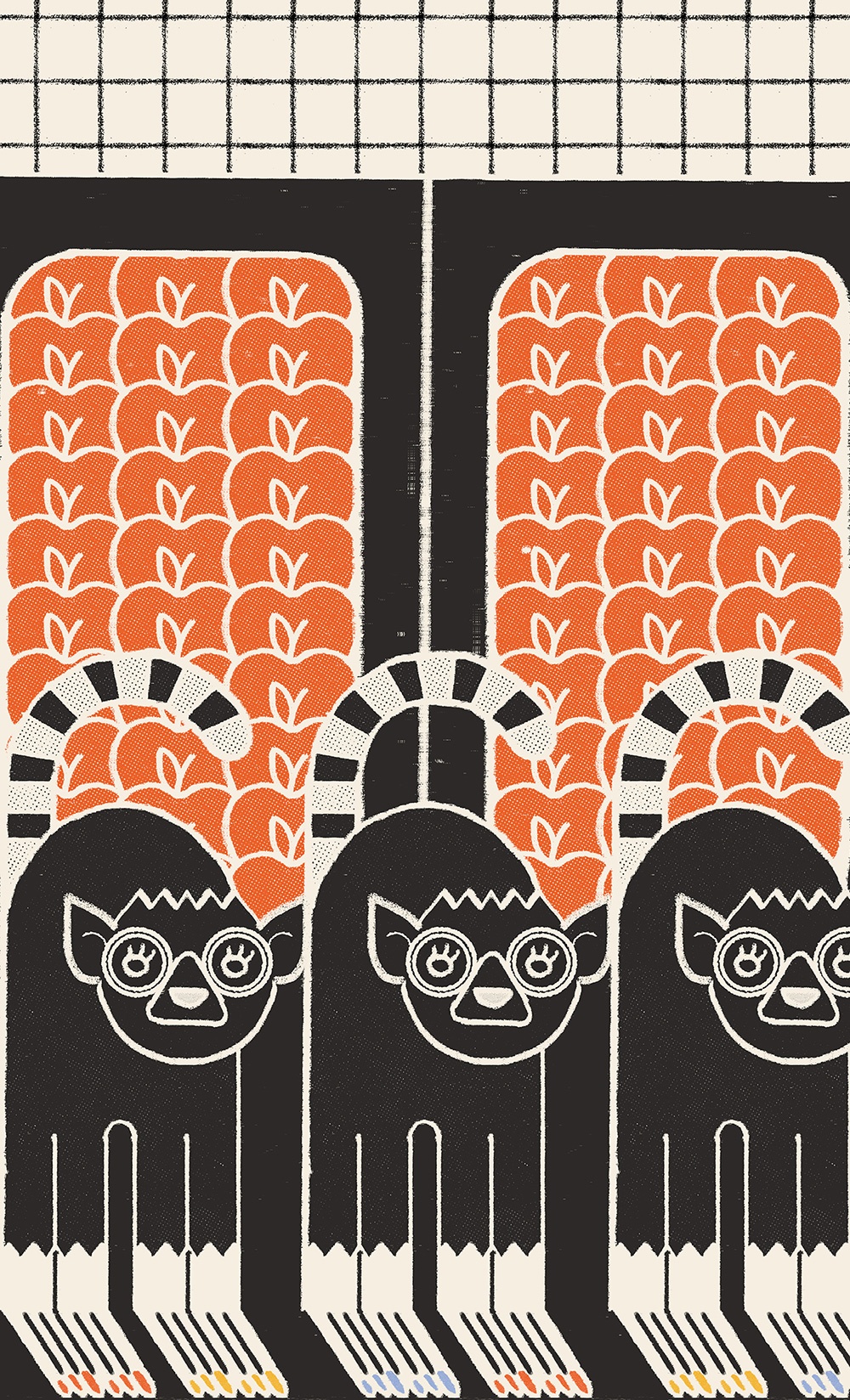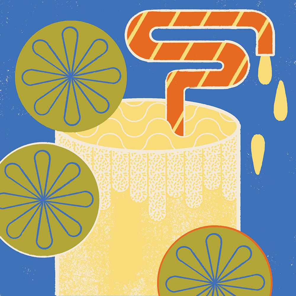 Le illustrazioni di Giorgia Brugnoli sono rotonde, generose, morbide, sgargianti e felici: un po’ come l’infanzia di un ventennio fa quando ci si vestiva comodi e colorati, con occhiali spigolosi, accessori fuori dagli schemi e si bevevano bibite dalle tonalità improponibili.