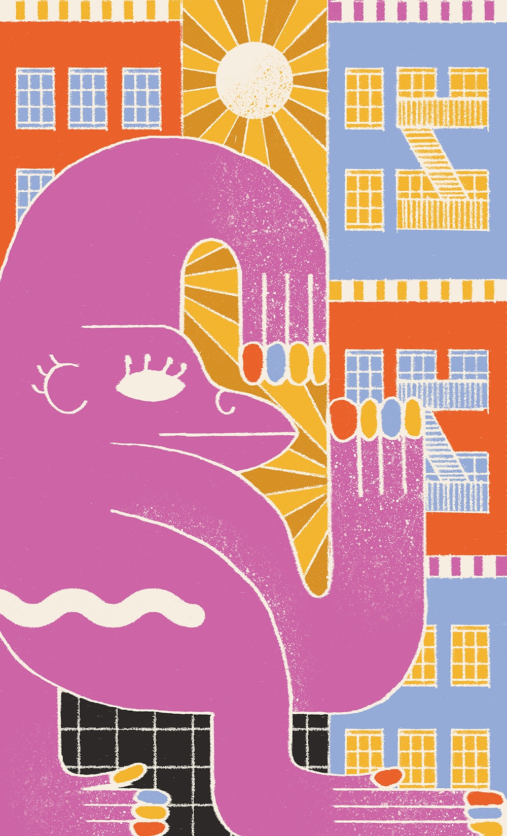 Grazie mille! La scelta dei colori è nostalgica come i soggetti che spesso disegno: mia madre ci ha spesso vestite Benetton negli anni Novanta e per qualche motivo i colori e le illustrazioni di quelle magliette, felpe, pigiami, mi sono sempre rimasti impressi. Poi anni fa ho fatto una ricerca e ho identificato le combinazioni che più si avvicinavano al guardaroba di quel periodo della mia vita, e da quel momento ho sempre usato quelle. Sono i colori che uso anche oggi nel mio abbigliamento, se mi vedessi di persona diresti che mi vesto come le mie illustrazioni.
