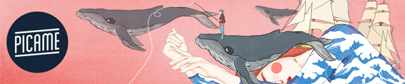 “Mentre disegnavo immaginavo di essere stesa sulla spiaggia, ancora bagnata, il sale che sfrigola sulla pelle, gli occhi chiusi. Gli unici rumori sono le voci dei pescatori, lo sfregare delle vele di una barca, il suono ovattato del mare. In quello stato puoi immaginarti tutto quello che vuoi, anche un cielo rosa e delle balene che ci nuotano dentro”.