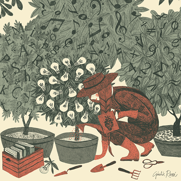 La sua versatilità le consente di spaziare in diversi ambiti editoriali; oltre ai pregevoli lavori personali ha illustrato numerosi libri e copertine per Rizzoli Editore e Bompiani e ha regalato a tutti i lettori di PICAME un nuovo header, che potete vedere qui sotto insieme ad una selezione di lavori fatta da Giulia in persona.