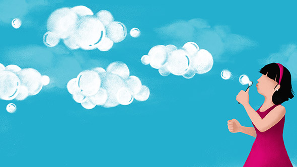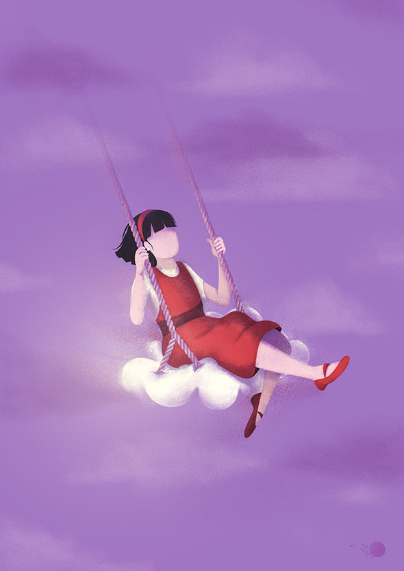 “Attraverso l’illustrazione della bambina, che spesso torna protagonista delle mie opere, esprimo concetti nostalgici di libertà perduta. Crescendo diventa sempre più difficile preservare il tesoro che custodiamo da bambini. Un tesoro fatto di fantasia, stupore e spensieratezza. Pallino è l’alter ego che lotta per salvaguardare questo tesoro, la parte di me che si oppone alle contaminazioni del mondo adulto che uccidono leggerezza e creatività. Perché un cielo non è mai solo un cielo”.