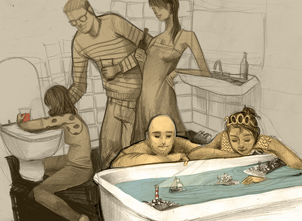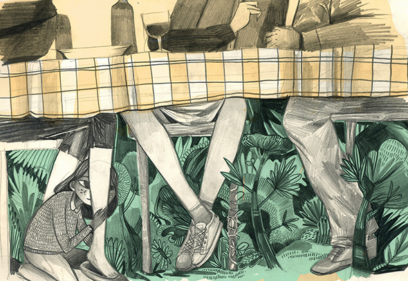 Margherita Barrera è un’illustratrice eclettica. Figure umane e immaginarie popolano paesaggi urbani e chagalliani, naturali e misteriosi, alle volte metafisici. Il suo tratto può essere dolce nell’illustrare i mondi segreti di una bambina colta nella solitudine della sua sedia, ma anche deciso e prorompente nel descrivere una scena di sesso da kama sutra. Lo sguardo è il principale protagonista di questi lavori: segreto, nascosto, voyeristico, perturbante. Sfidatelo.