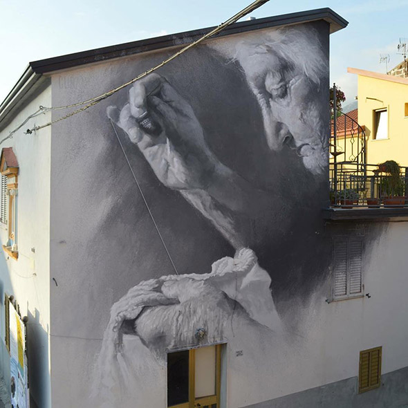 L’artista, venezuelano di nascita, romano di adozione, vanta collaborazioni in città come Berlino, Barcellona, Londra e Mumbai. Ultimamente abbiamo anche visto i suoi pezzi in giro in diverse città d’Italia. Carriera da autodidatta, spazia dalla bomboletta agli acrilici, dalla tela al polimetalcrilato, Gomez sperimenta continuamente nuove tecniche e materiali. I suoi caravaggeschi dipinti hanno raccontato diverse storie legate alla tradizione, al mito, alle vicende personali di persone comuni. Sui suoi muri riecheggiano storie di artigiani e di operai in chiave di racconto mitologico o protagonisti della tradizione cattolica.