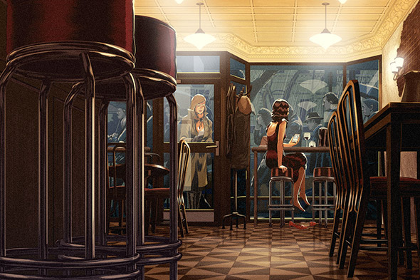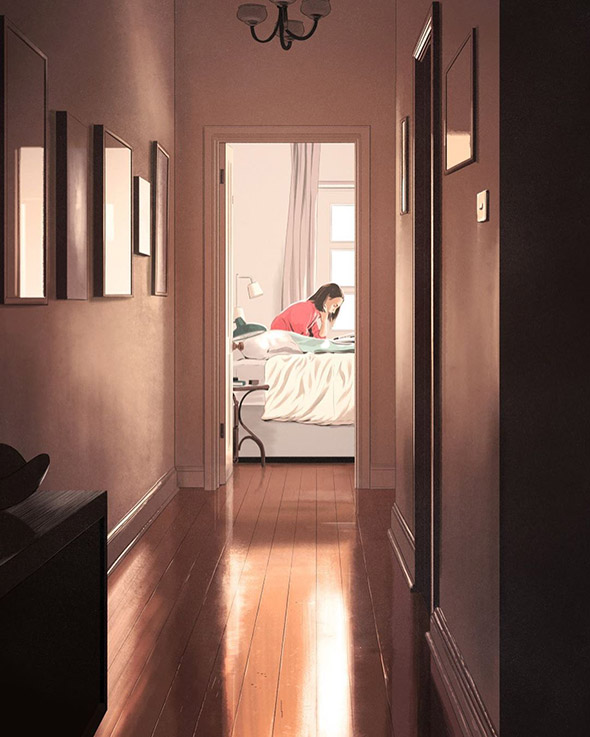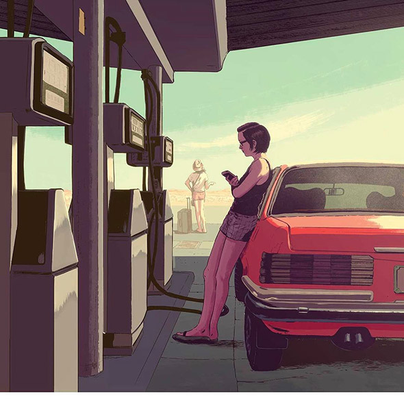 E in effetti le sue illustrazioni sembrano frame estrapolati dall’ultima serie tv o vignette ritagliate direttamente dalle pagine di un fumetto. Osservandole viene naturale provare a immaginare la storia dei personaggi ritratti e quali eventi li abbiano condotti dove sono ora, indovinandone lo stato d’animo. Una magia che accade solo quando un artista è in grado di rappresentare una storia con un’abilità tale da indurre l’osservatore ad immedesimarsi in essa, collegandola alla quotidianità o ai trascorsi della propria vita.